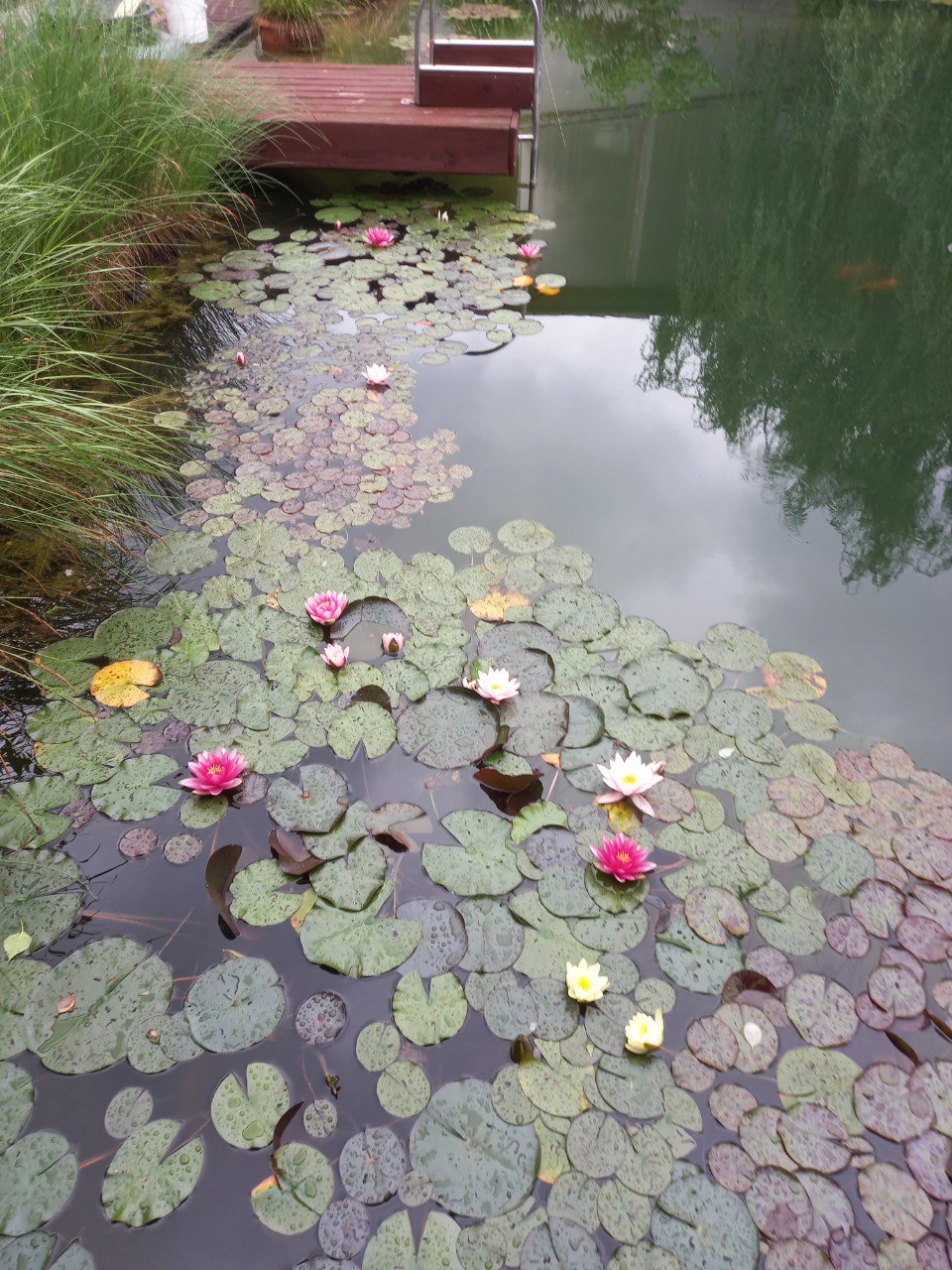 Пруд сам по себе не является украшением дачи или загородного участка — он воспринимается целостно с растениями. Мы создали гармоничную композицию, где водная гладь дополняется живой зеленью.